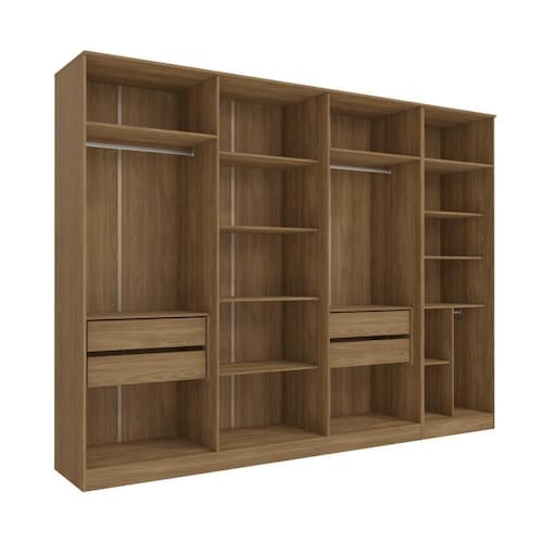 1x Guarda-Roupa Sem Portas Closet 4 Gavetas Kapperberg Adapt Nogueira 237cm;