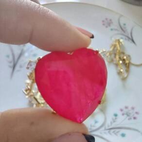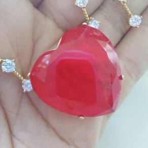 Conjunto Colar Brinco Pulseira Pedra Coração Vermelho