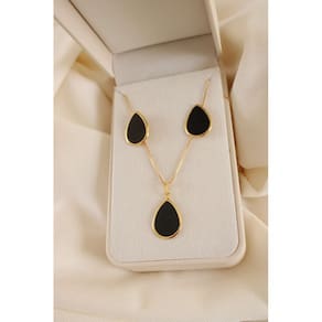 Realce sua beleza com este incrível conjunto composto por colar e par de brincos com design em formato de gota. A combinação do dourado com a pedra preta traz um toque moderno e sofisticado, ideal para ocasiões especiais ou para dar um charme a mais no seu dia a dia. Destaques do produto:Banhado à ouro Com verniz italianoHipoalergênico Para maior durabilidade das suas peças, siga essas dicas: - Evite contato com água e produtos químicos. - Retire suas peças antes de tomar banho, nadar ou usar perfumes e cremes.- Guarde corretamente - Armazene em locais secos, de preferência em saquinhos individuais, para evitar atritos e oxidação.- Tire antes de dormir e praticar atividades físicas - O suor pode reduzir a vida útil do folheado.- Limpeza suave - Use uma flanela macia para limpar e manter o brilho das suas peças.
