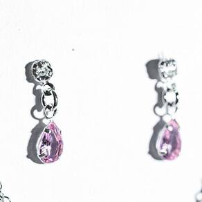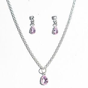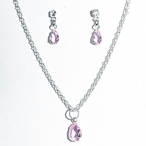 Conjunto de brinco e colar com zircônia rosa na prata 925, perfeito para dar um toque de elegância e sofisticação ao seu look. Adquira já!