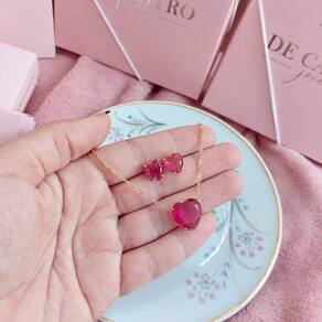 Este Conjunto Colar e Brinco Coração Pedra Vermelho Marsala é perfeito para quem busca uma joia elegante e sofisticada. O conjunto é banhado em ouro 18k, o que confere um brilho único e duradouro.