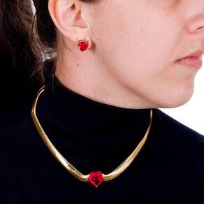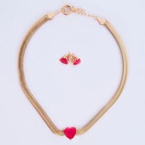 Conjunto composto de colar e um par de brincos, banhado a ouro com pedra fusion é um conjunto luxuoso que te deixa em destaque em qualquer situação.