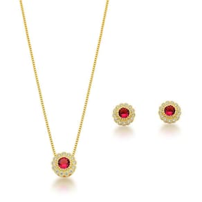 Conjunto Colar e Brincos ponto de Luz Vermelho Banhado a Ouro 18k