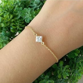 Conjunto colar + pulseira pedra retangular banhado a ouro 18k