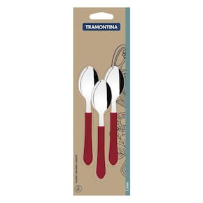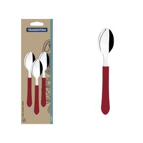 Conjunto de Colheres para Chá Tramontina Leme com Lâminas em Aço Inox e Cabos de Polipropileno Vermelho 3 Peças