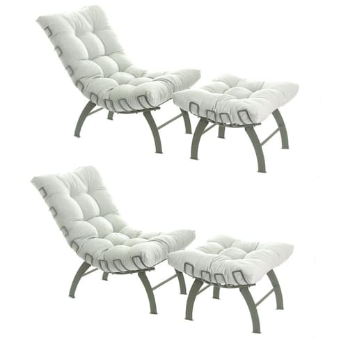 Características Almofada do Assento Removível Marca Metaltru Tipo de Assento Fixo Suporta Até (kg) 90 kg Possui Rodízio Não Cor do Produto Verde Oliva/Bege Estrutura do Assento Aço Estrutura do Encosto Aço Ambiente Principal Sala de Jantar Cor Predominante Verde Informações Complementares (Novo) 2 Poltronas, 2 Puffs e manual de montagem Itens Inclusos Itens Inclusos 2 Poltronas, 2 Puffs e manual de montagem
