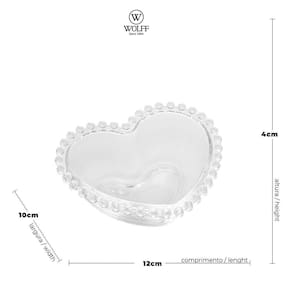 Deixe sua criatividade e romantismo entrar em ação com esse conjunto composto por 4 bowls de cristal em formato de coração. Suas bordas são decoradas em bolinhas que lembram o formato de pérolas.