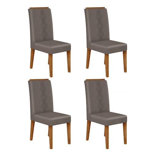 Conjunto com 04 Cadeiras Yasmin Freijó Veludo Lunar DJ Móveis - Cinza