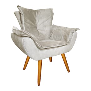 Conjunto Com 1 Poltrona e 1 Puff Para Salão de Beleza Apolo Suede Bege - LM DECOR