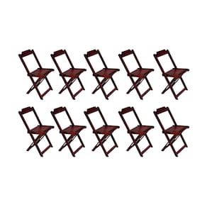 Conjunto com 10 Cadeiras Dobráveis em Madeira Maciça - Imbuia - Marrom