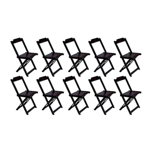 Conjunto com 10 Cadeiras Dobráveis em Madeira Maciça - Tabaco - Marrom