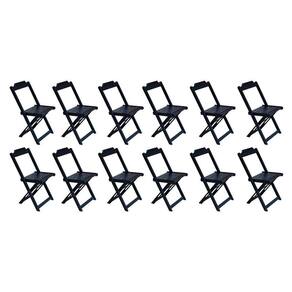 Conjunto Com 12 Cadeiras Dobráveis Em Madeira Maciça - Preto - Cor: Preto