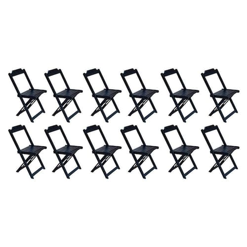 Kit 12 Cadeiras De Madeira Dobravel Pretoé ideal para bares, restaurantes, estabelecimentos, áreas de lazer e tambem para sua casa. Feito em madeira maciça, tornando resistentes e duráveis. Seu design permite que seja encaixado em qualquer ambiente, trazendo um toque a mais para seu estabelecimento. Além de sua durabilidade, o que lhe trará conforto para servir seus clientes. Por ser dobrável torna-se mais fácil guardar, manusear e limpar o produto.Atenção: EVITE USAR PRODUTOS ABRASIVOS E QUíMICOS PARA LIMPEZA DO PRODUTO, aconselha-se o uso de pano umedecido para melhor conservação; mantenha o produto fora de chuva e sol constantes.CADEIRA Cor: Preto Modelo: Dobravel Dimensões: Altura 80 | Largura 45 | Profundidade 42Conjunto com 12 Cadeiras DobrÃveis em Madeira MaciÃa - Preto