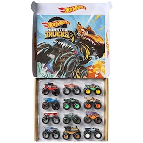 Este pacote de 12 caminhões em escala 1:64 da Hot Wheels Monster Truck é perfeito para crianças que amam carros e caminhões. Com rodas gigantes e designs incríveis, esses caminhões são ideais para impactos e esmagamentos épicos. Cada caminhão vem com estatísticas detalhadas, incluindo nome, tipo de caminhão, força, ataque de colisão exclusivo e motorização, o que torna a brincadeira ainda mais divertida ao contar histórias. O pacote é entregue em uma embalagem especial projetada para aprimorar a experiência de presentear e desembalar. Cada caminhão é vendido separadamente e está sujeito a disponibilidade. Cores e decorações podem variar. Os pacotes Monster Truck 12 são perfeitos para mega colisões e quebras direto da caixa. A escala 164 é perfeita para levar a missão do caos final a qualquer lugar. Inicie sua coleção com 12 modelos selecionados manualmente em um pacote. Este é um ótimo presente para crianças a partir de 3 anos.