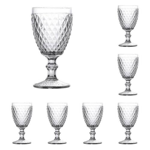 Com acabamento em relevo, as taças são resistentes, duráveis e perfeitas para servir vinhos, espumantes, sucos, água ou coquetéis, proporcionando charme tanto em ocasiões especiais quanto no uso diário.
