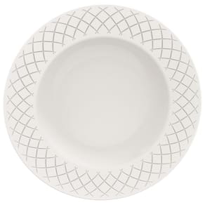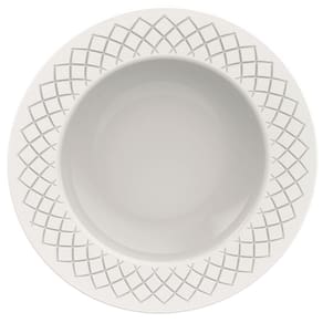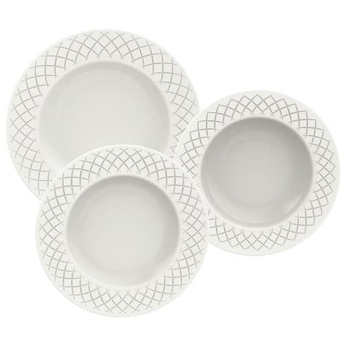 As peças desse conjunto possuem uma estrutura tradicional clássica e simples, mas com um toque moderno super atual, graças ao padrão de linhas curvas que formam um grafismo charmoso, delicado e cheio de estilo. Essa estética foi especialmente desenvolvida para que as peças complementem a decoração de forma leve e harmônica, garantindo que o cardápio seja o verdadeiro destaque da mesa! O Conjunto Ingrid é composto por pratos fundos, rasos e de sobremesa, e possui fabricação em Porcelana translúcida de alta tecnologia e qualidade superior. Esse material garante excelente brancura, um brilho inigualável, ótima resistência mecânica e porosidade próxima de zero, que evita a proliferação de fungos e bactérias para garantir mais segurança e higiene em sua cozinha, além de proporcionar durabilidade e performance para sua mesa posta.