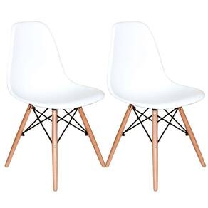 Conjunto Com 2 Cadeiras Charles Eames I Branco Cadeira Eiffel Eames Base Madeira A CADEIRA CHARLES EAMES EIFFEL foi criada nos anos 50, é vencedora do Museu de Nova York da concorrência Design de Mobiliário Low-Cost Arte Moderna Internacional. Sua base é em MADEIRA no formato de uma torre faz com que o ambiente não fique sobrecarregado. Adequa-se perfeitamente para compor conjunto de mesa de jantar ou qualquer outro ambiente em sua casa ou escritório. Ideal para receber amigos e familiares com um toque de elegância e charme. As pernas da cadeira são em madeira e fios de aço preto no qual garantem estabilidade à cadeira.