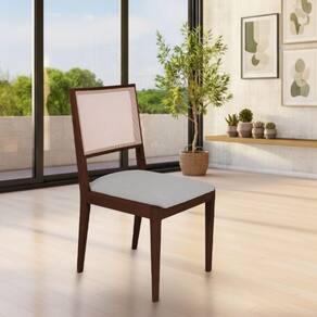 AS IMAGENS SÃO MERAMENTE ILUSTRATIVAS E PODEM SOFRER VARIAÇÕES DE COR E PEQUENOS DETALHES DE ACORDO COM O SEU MONITOR, ILUMINAÇÃO DO AMBIENTE E ATÉ MESMO A SUA PERCEPÇÃO VISUAL.Conjunto com 2 Cadeiras de Jantar Suellen em Madeira e Mdf Castanho Linho Cinza Prata