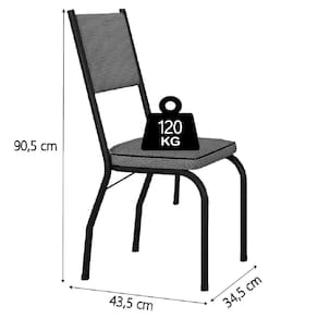 MEDIDAS: [ A ] = 90,5 cm [ L ] = 34,5 cm [ P ] = 43,5 cm PESO: 2,07 kg cada SUPORTA ATÉ: 120 Kg MODELO: Conjunto Com 2 Cadeiras Diana MARCA: Artefamol MATERIAL: Aço DENSIDADE DA ESPUMA: D23 PÉS: 4 POSSUI SAPATAS: Sim MATERIAIS DA SAPATA: Plástico ITENS INCLUSOS: 2 Cadeiras INSTRUÇÕES E CUIDADOS: Não utilizar produtos abrasivos e esponjas de aço; não molhar; não deixar exposto ao tempo com chuva ou sol; utilizar apenas pano úmido. GARANTIA: 3 meses.