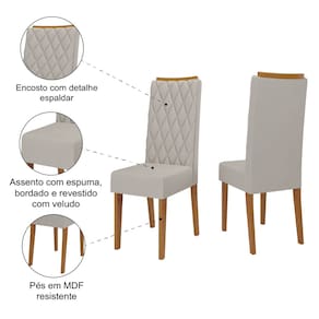 O conjunto de 2 cadeiras Bele é a escolha perfeita para cozinhas e salas de jantar que buscam conforto e estilo. As cadeiras são projetadas para combinar charme e resistência, transformando seu espaço em um local aconchegante e elegante. O encosto com bordados adiciona um toque de personalidade e sofisticação ao design, enquanto o assento com espuma oferece conforto ideal para o uso diário. Revestidas em tecido veludo, as cadeiras proporcionam um visual sofisticado e agradável ao toque. Os pés em MDF completam a peça com estabilidade e durabilidade, garantindo que seja uma escolha duradoura e prática para seu lar.