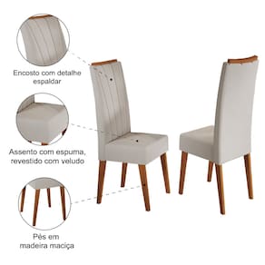 MEDIDAS: [ A ] = 101 cm [ L ] = 49 cm [ P ] = 59 cm PESO: 15 Kg PESO SUPORTADO: 90 Kg cada MODELO: Conjunto com 2 Cadeiras Estofadas Veludo Sala de Jantar Sofia Viero MARCA: Viero ESTRUTURA: Madeira Maciça ACABAMENTO: Pintura UV TECIDO: Veludo toque macio ESPALDAR: Sim REVESTIMENTO ASSENTO: Espuma D26 PÉS: Madeira Maciça SAPATAS: Plásticas DIFERENCIAL: Cadeira com base em madeira maciça encosto acolchoado, e espalda, revestimento em tecido veludo SISTEMA DE MONTAGEM: Parafusos e cavilhas ITENS INCLUSOS: 2 cadeiras, 1 manual de montagem e 1 kit parafusos INSTRUÇÕES E CUIDADOS: Limpar com pano levemente umedecido com água, não utilizar produtos abrasivos GARANTIA: 3 meses pelo fabricante