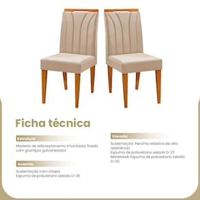Produzidas em madeira de eucalipto tratada e imunizada, revestida em tecido linho, dando maciez e suavidade ao toque. Possui assento com sustentação em chapa e espuma de poliuretano selada D28 e encosto com percinta elástica e espuma de poliuretano selada D23, proporcionando bastante conforto. Além disso, conta com costuras pantográficas, que traz todo charme e estilo para sua sala de jantar.