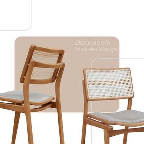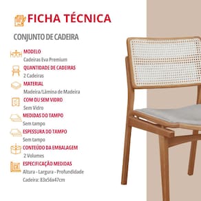 As Cadeiras Eva Premium com um toque ainda mais natural e sofisticado. Produzidas em madeira maci?a, combinam resist?ncia com um design que valoriza o artesanal. O grande destaque fica por conta do encosto em Ratan, que adiciona leveza visual, ventila??o e um charme atemporal inspirado na est?tica org?nica.