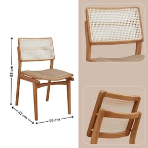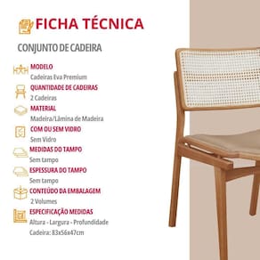 As Cadeiras Eva Premium com um toque ainda mais natural e sofisticado. Produzidas em madeira macica, combinam resistencia com um design que valoriza o artesanal. O grande destaque fica por conta do encosto em Ratan, que adiciona leveza visual, ventilacao e um charme atemporal inspirado na estetica organica.