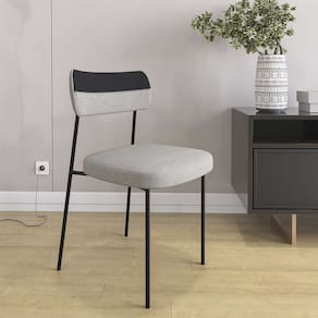 O Conjunto Mila possui estrutura em aço, encosto em compensado em enchimento em espuma D26, assento em compensado com enchimento em espuma D26 e revestimento em linho com detalhe em couríssimo.