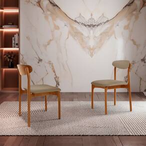 Conjunto com 2 cadeiras Noronha em Madeira Maciça para Sala de Jantar Moderna Mobília - Bege