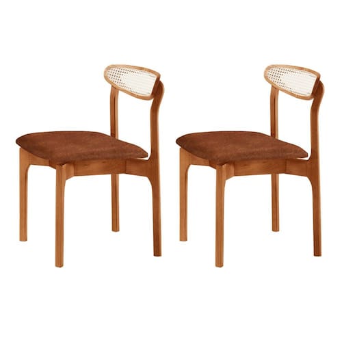 Os assentos estofados oferecem conforto superior, perfeitos para longos momentos à mesa. O encosto em ratan natural adiciona leveza ao conjunto e um toque artesanal exclusivo, equilibrando a solidez da madeira com um visual mais delicado e refinado.