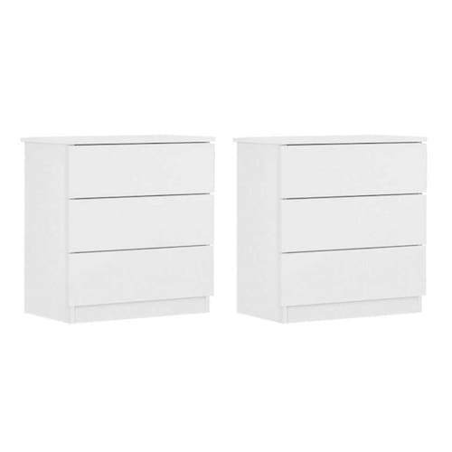 Que tal o Conjunto com 2 Criados-Mudos Veronna?Compacto e moderno, o Conjunto com 2 Criados-Mudos Veronna é indispensável para manter o seu espaço mais organizado e com muito bom gosto. Além de serem úteis e ficarem uma graça ao lado da cama ou naquele canto muitas vezes não usado, as peças contam com 3 gavetas cada para que você possa deixar pequenos objetos fáceis de alcançar. Ah, a clássica cor branca é ótima para inserir na decoração! Gostou?