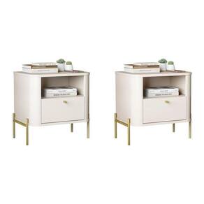 Mesa de cabeceira com os cantos arredondados exclusivos da linha, base e tampo em MDF de 1,5cm, gaveta em MDF de 1,5cm com corrediças telescópicas além dos pés e puxadores em metal com design único e sofisticado. Altura do Conjunto: 48.5 cm Ambiente: null Ambiente Principal: Quarto Cor: Off White/Dourado Informação Complementar: 2x Mesa de Cabeceira Curva 1 Gaveta e 1 Nicho Pés e Puxadores em Metal 45cm Tucupí OffWhite/Dourado Largura: 45 cm Altura: 48,5 cm Peso: 10,1 kg Profundidade: 33 cm Necessita Montagem: Sim