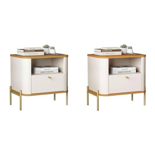 Mesa de cabeceira com os cantos arredondados exclusivos da linha, base e tampo em MDF de 1,5cm, gaveta em MDF de 1,5cm com corrediças telescópicas além dos pés e puxadores em metal com design único e sofisticado. Altura do Conjunto: 48.5 cm Ambiente: null Ambiente Principal: Quarto Cor: Off White/Marrom/Dourado Informação Complementar: 2x Mesa de Cabeceira Curva 1 Gaveta e 1 Nicho Pés e Puxadores em Metal 45cm Tucupí Off White/Marrom/Dourado Largura: 45 cm Altura: 48,5 cm Peso: 10,1 kg Profundidade: 33 cm Necessita Montagem: Sim