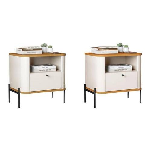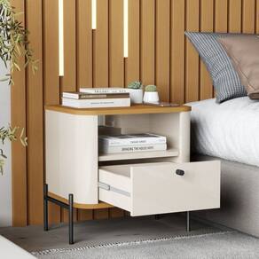 Mesa de cabeceira com os cantos arredondados exclusivos da linha, base e tampo em MDF de 1,5cm, gaveta em MDF de 1,5cm com corrediças telescópicas além dos pés e puxadores em metal com design único e sofisticado. Altura do Conjunto: 48.5 cm Ambiente: null Ambiente Principal: Quarto Cor: Off White/Marrom/Preto Informação Complementar: 2x Mesa de Cabeceira Curva 1 Gaveta e 1 Nicho Pés e Puxadores em Metal 45cm Tucupí Off White/Marrom/Preto Largura: 45 cm Altura: 48,5 cm Peso: 10,1 kg Profundidade: 33 cm Necessita Montagem: Sim