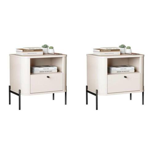 Mesa de cabeceira com os cantos arredondados exclusivos da linha, base e tampo em MDF de 1,5cm, gaveta em MDF de 1,5cm com corrediças telescópicas além dos pés e puxadores em metal com design único e sofisticado. Altura do Conjunto: 48.5 cm Ambiente: null Ambiente Principal: Quarto Cor: Off White/Preto Informação Complementar: 2x Mesa de Cabeceira Curva 1 Gaveta e 1 Nicho Pés e Puxadores em Metal 45cm Tucupí OffWhite/Preto Largura: 45 cm Altura: 48,5 cm Peso: 10,1 kg Profundidade: 33 cm Necessita Montagem: Sim