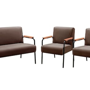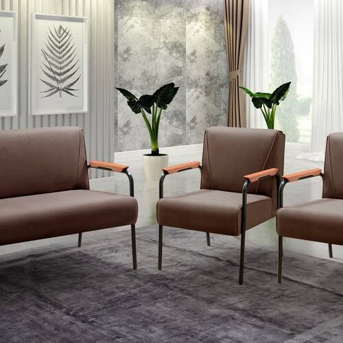 Conjunto com 2 Poltronas e Namoradeira Decorativa Jade Sala de Estar Marrom