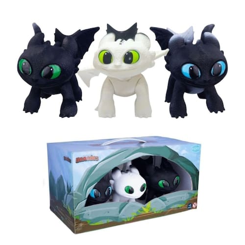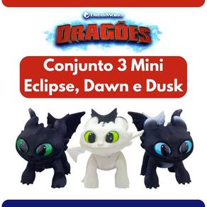 - Contém 3 bonecos miniaturas: Dawn, Dusk e Eclipse - Inspirados nos personagens da coleção Baby Dragões DreamWorks Como Treinar o Seu Dragão - Design carismático com cores vivas e acabamento cuidadoso - Material resistente e seguro para crianças - Ideal para brincadeiras, decoração de quartos ou coleção