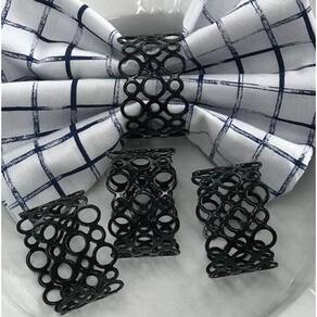 Transforme sua mesa com o Conjunto de 4 Argolas para Guardanapos em Metal Preto, trazendo um toque de sofisticação e modernidade a qualquer ocasião. Feitas em metal resistente, essas argolas possuem um design único e contemporâneo, ideal para complementar mesas postas com estilo e elegância. Com tamanho compacto de 4,5cm x 4,5cm x 3cm, são perfeitas para diversos tipos de guardanapos, adicionando um detalhe refinado à decoração da sua mesa.