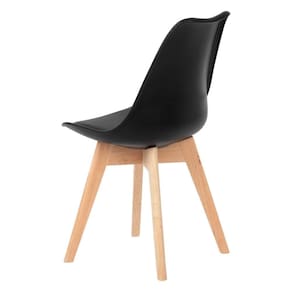 Conjunto Com 4 Cadeira Leda Preta - Charles Eames Wood Com Almofada Cadeira Leda Charles Eames Wood Do designer finlandes Eero Saarinen, a cadeira com assento estofado Saarinen representa um trabalho icônico de design da década de 50, juntamente com a Eames. Sua concha ergonômica é produzida em PP (Polipropileno) e conta com assento fixo em tecido sintetico (PU). Seus pés são feitos em madeira com ótimo acabamento. Adequa-se perfeitamente para compor conjunto de mesa de jantar ou qualquer outro ambiente em sua casa ou escritório. Ideal para receber amigos e familiares com um toque de elegância e charme.