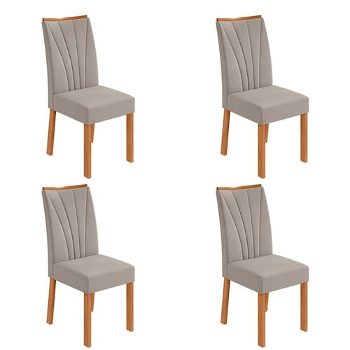 Que tal o Conjunto com 4 Cadeiras Apogeu? Sua sala de jantar dos sonhos está a um Conjunto Apogeu de distância! Com 4 cadeiras, o kit tem o bem-estar perfeito para o dia a dia, graças ao assento e ao encosto estofados em espuma e revestidos em tecido de toque agradável - a estrutura clássica ainda ajuda na receptividade, pois recebe bem o corpo. Por falar em clássico, a cor neutra e o amadeirado se unem num combo primoroso para encher de sofisticação sua casa - notou o detalhe na parte superior do encosto? Além de embelezar o ambiente, ele auxilia a puxar e recolher as cadeiras ;) Marca: Não Informado