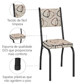 O Conjunto de 4 Cadeiras Diana Artefamol é uma excelente opção para complementar seu ambiente com estilo e qualidade, seja sua cozinha ou área gourmet. Possui estrutura em aço resistente, e assento revestido com espuma de qualidade densidade D25, com tecido de fácil limpeza proporcionando praticidade ao seu dia a dia! Além de possuir sapatas plásticas que não agridem o piso.