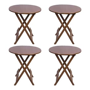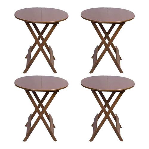 Conjunto com 4 Mesas Redondas Dobráveis 70x70 em Madeira Padrão - Imbuia - Marrom