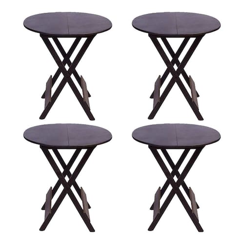 Conjunto com 4 Mesas Redondas Dobráveis 70x70 em Madeira Padrão - Tabaco - Marrom