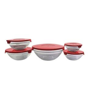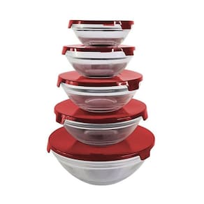Conjunto de Potes com 5 Potes Redondos de Vidro para Armazenar Alimentos Material Vidro e Plástico Empilháveis Vermelho