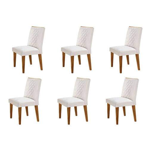 conjunto com 6 cadeiras bari veludo pérola e capuccino