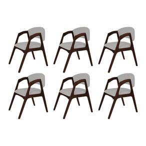 Conjunto com 6 Cadeiras de Jantar Estofada Gabriela Castanho Linho Cinza Prata