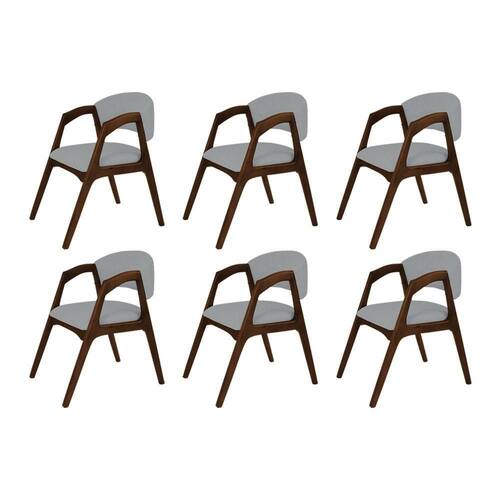 AS IMAGENS SÃO MERAMENTE ILUSTRATIVAS E PODEM SOFRER VARIAÇÕES DE COR E PEQUENOS DETALHES DE ACORDO COM O SEU MONITOR, ILUMINAÇÃO DO AMBIENTE E ATÉ MESMO A SUA PERCEPÇÃO VISUAL.Conjunto com 6 Cadeiras de Jantar Estofada Gabriela em Madeira e Mdf Mel Linho Cinza