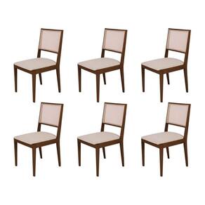 AS IMAGENS SÃO MERAMENTE ILUSTRATIVAS E PODEM SOFRER VARIAÇÕES DE COR E PEQUENOS DETALHES DE ACORDO COM O SEU MONITOR, ILUMINAÇÃO DO AMBIENTE E ATÉ MESMO A SUA PERCEPÇÃO VISUAL.Conjunto com 6 Cadeiras de Jantar Estofada Suellen Mel Linho Bege