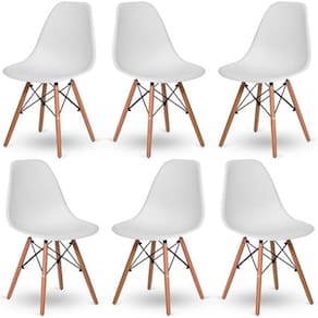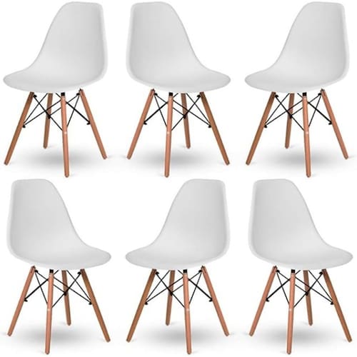 Conjunto com 6 Cadeiras Eiffel Brancas – Design Moderno com Base de Madeira Pé Palito - Branco